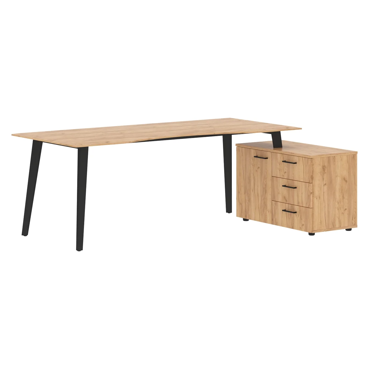 Стол руководителя с тумбой JCT 2013(R) Дуб Бофорд/Антрацит 2000х1300х750 JAY