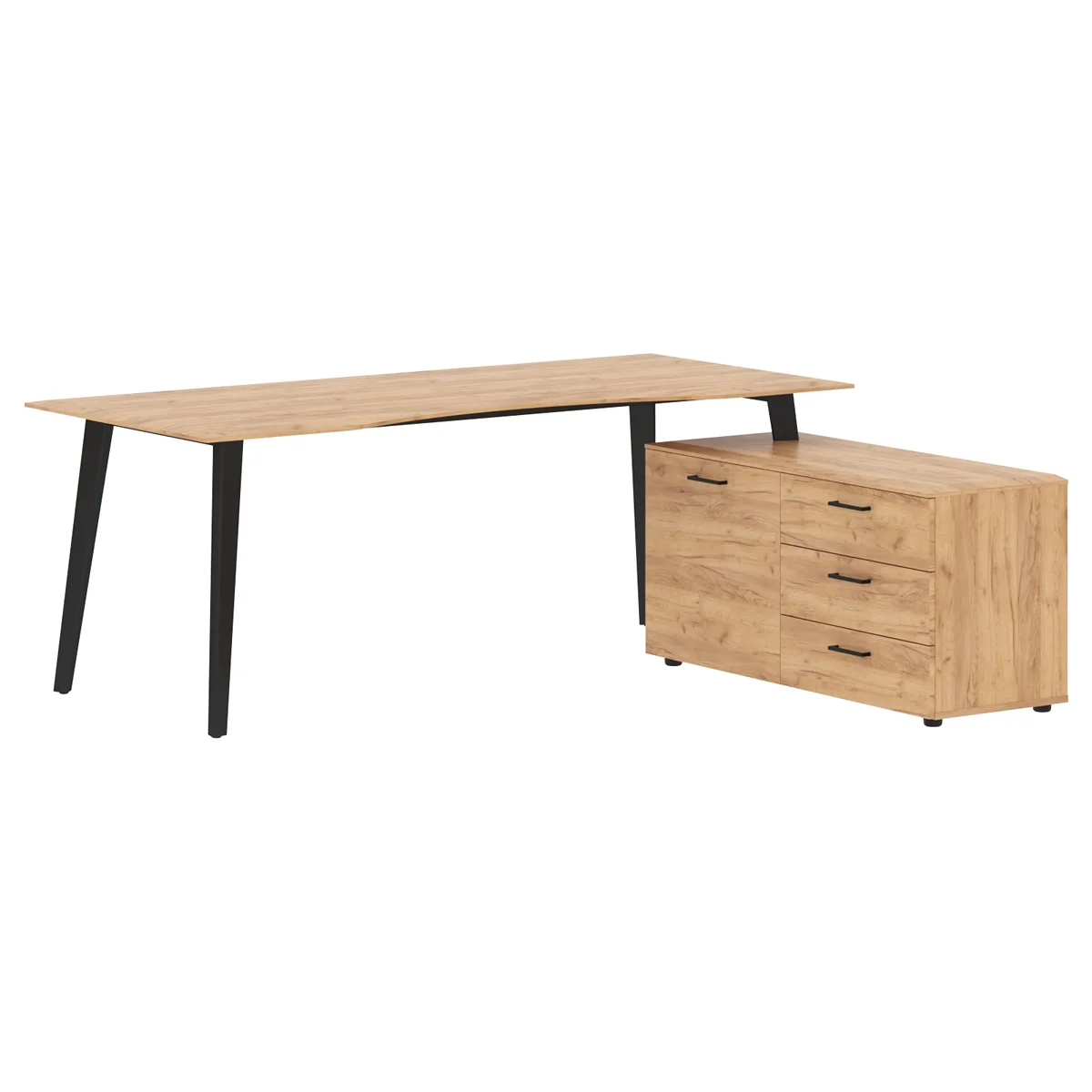 Стол руководителя с тумбой JCT 2018(R) Дуб Бофорд/Антрацит 2000х1800х750 JAY