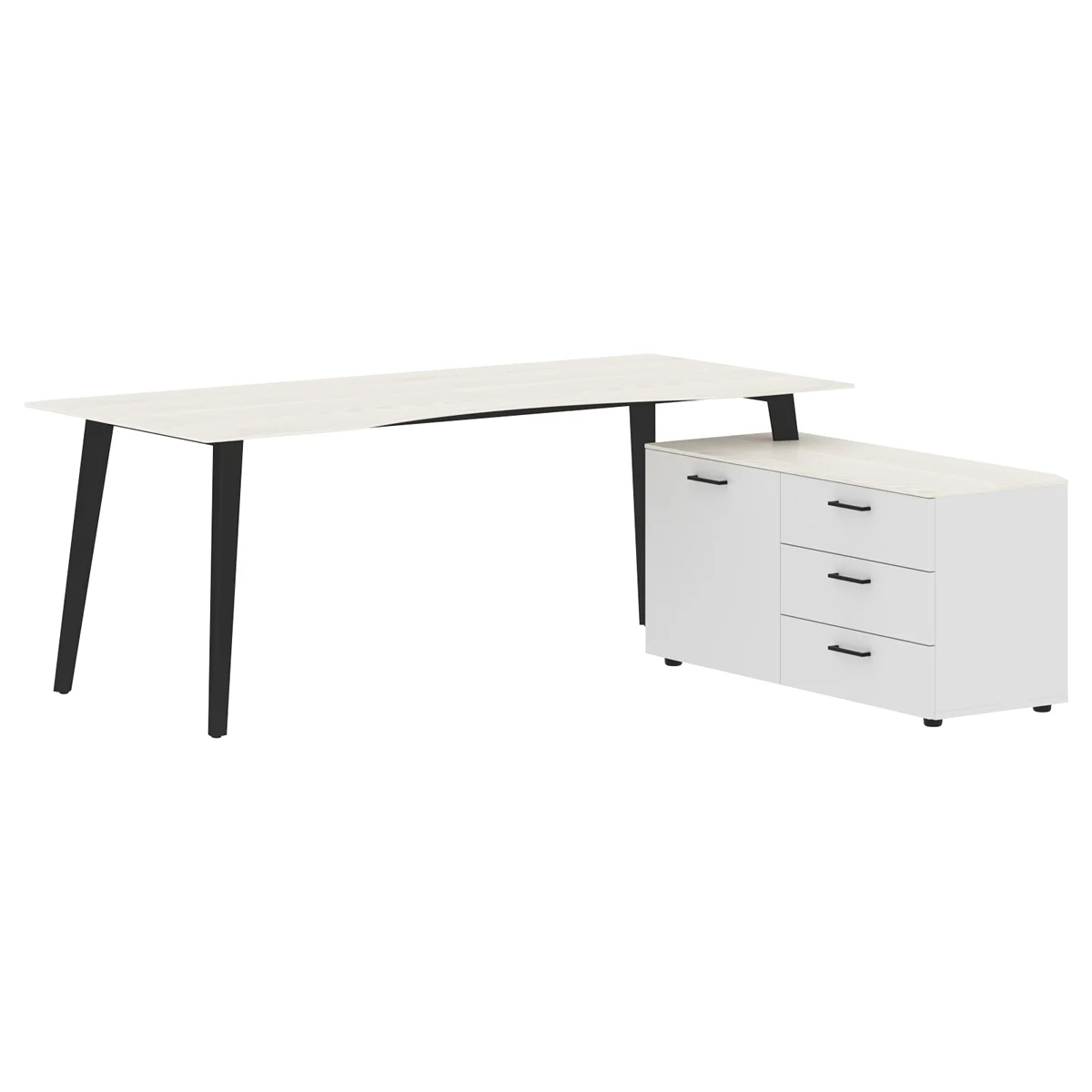 Стол руководителя с тумбой JCT 2018(R) Ясень белый/Антрацит 2000х1800х750 JAY