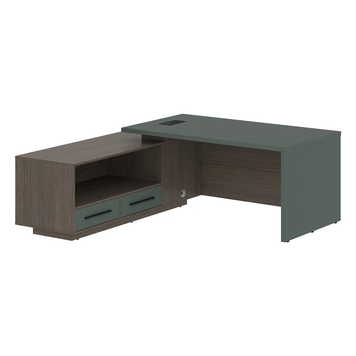 Стол руководителя с тумбой VCT 1919(L) Нефрит/Дуб Сильвер 1900х1900х750 VELION