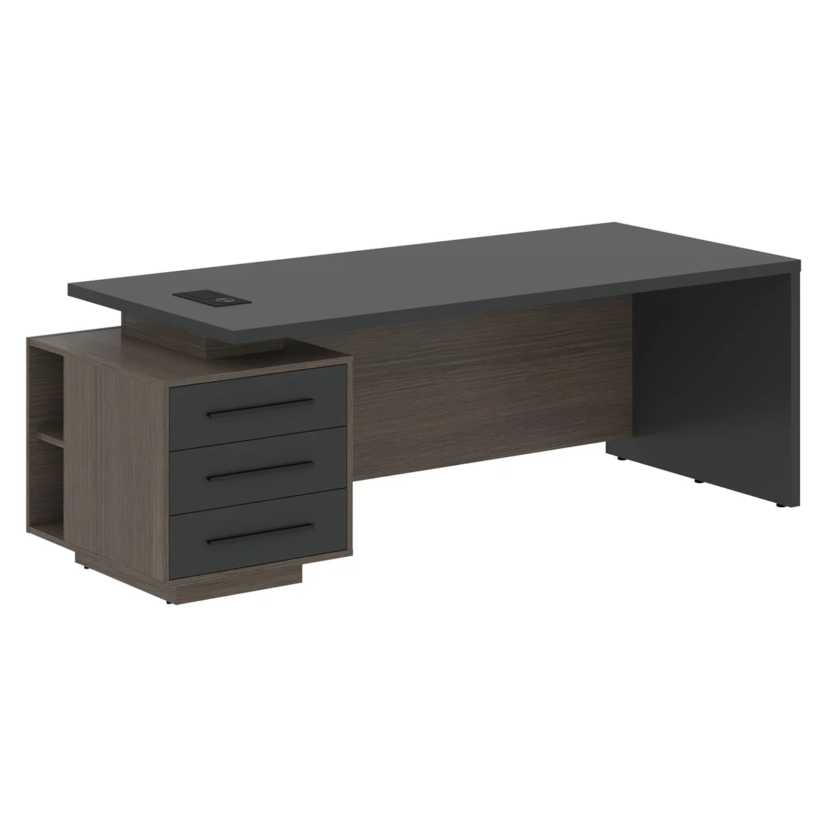 Стол руководителя с тумбой VCT 2290(L) Яшма черный/Дуб Сильвер 2200х900х750 VELION