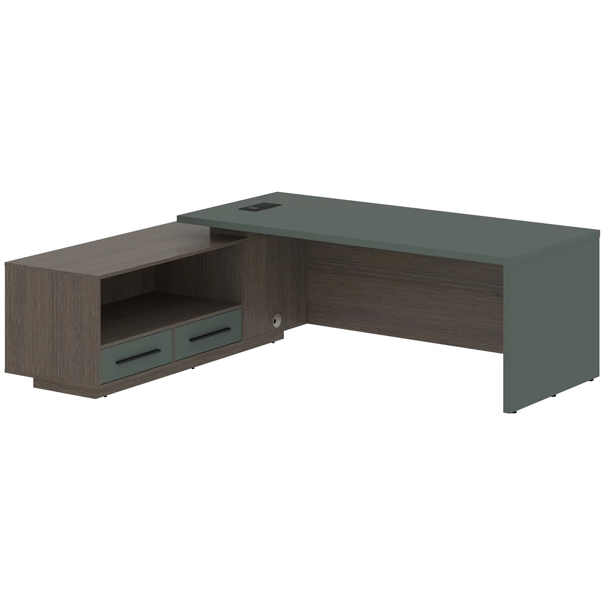 Стол руководителя с тумбой VCT 2319(L) Нефрит/Дуб Сильвер 2300х1900х750 VELION