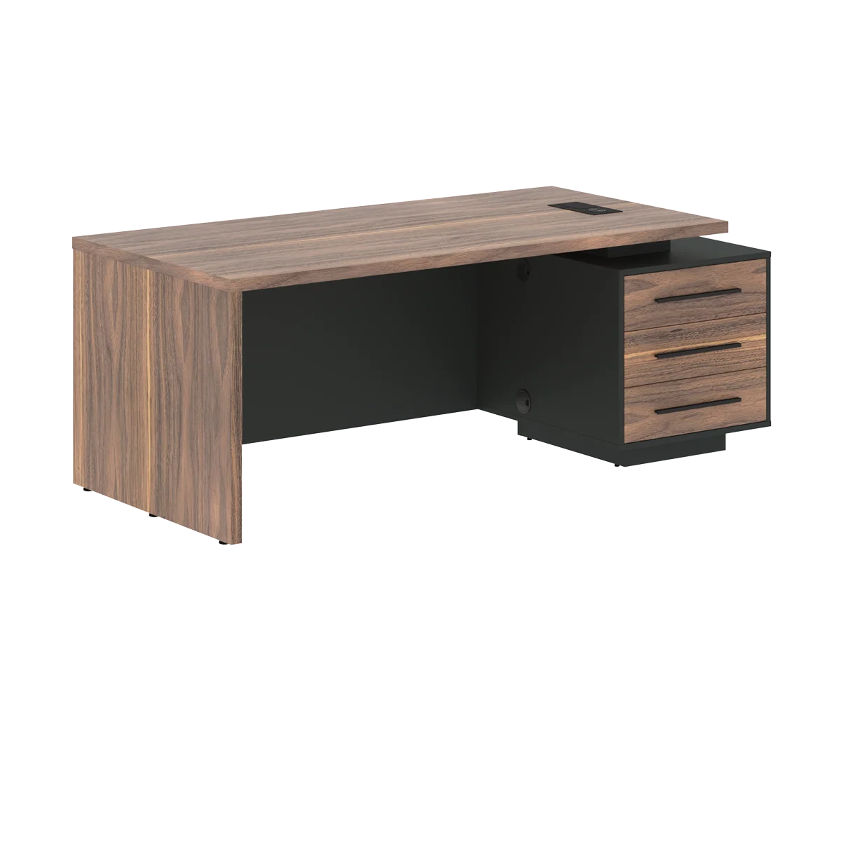 Стол руководителя с тумбой VRCT 2090(R) Американский орех/Черный матовый/Яшма черный 2000х900х750 VE