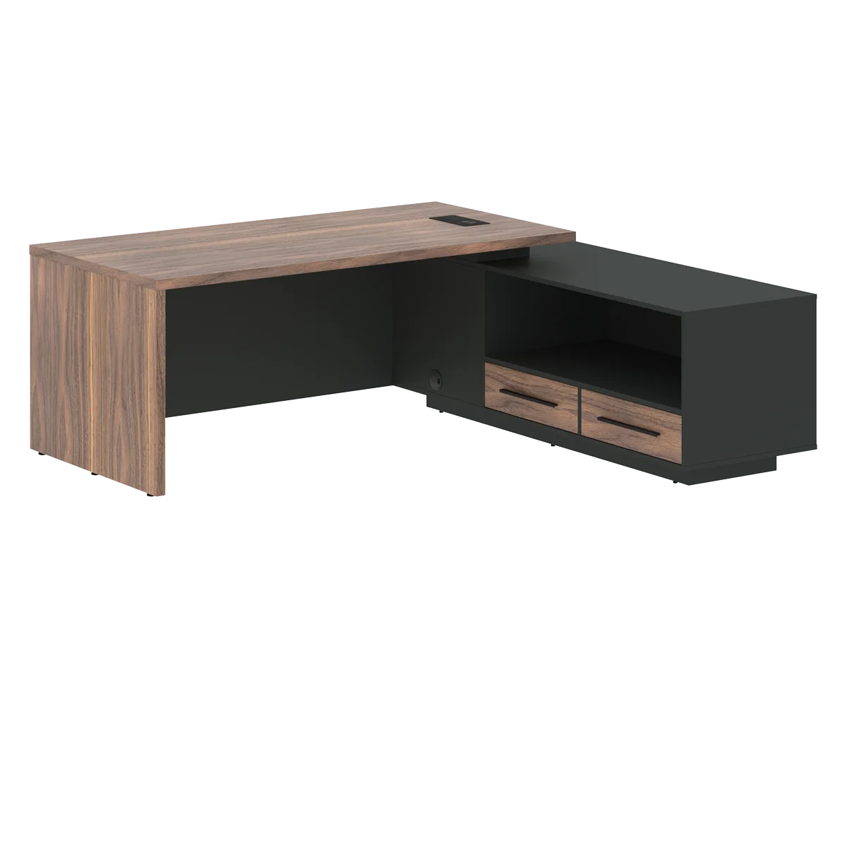 Стол руководителя с тумбой VRCT 2119(R) Американский орех/Черный матовый/Яшма черный 2100х1900х750 V