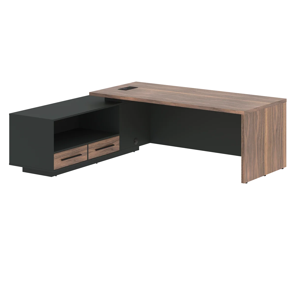Стол руководителя с тумбой VRCT 2319(L) Американский орех/Черный матовый/Яшма черный 2300х1900х750 V