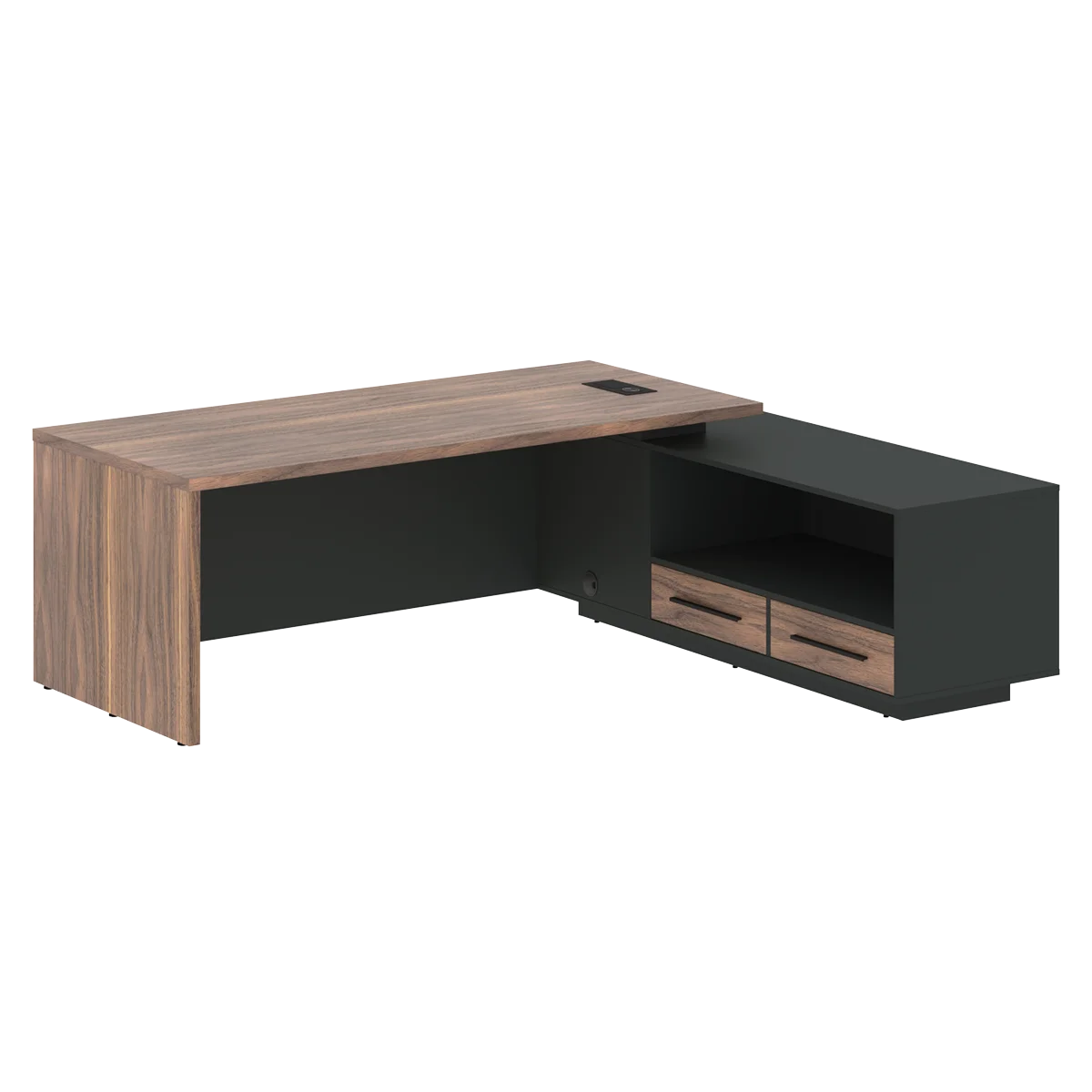 Стол руководителя с тумбой VRCT 2319(R) Американский орех/Черный матовый/Яшма черный 2300х1900х750 V