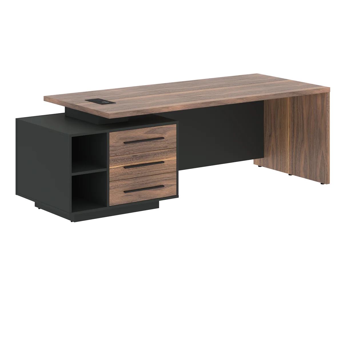 Стол руководителя с тумбой VRCT 2390(L) Американский орех/Черный матовый/Яшма черный 2300х900х750 VE