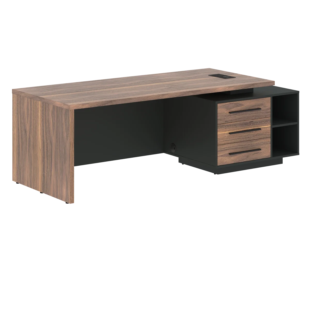 Стол руководителя с тумбой VRCT 2390(R) Американский орех/Черный матовый/Яшма черный 2300х900х750 VE