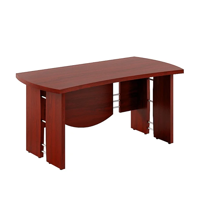 Универсальный рабочий стол руководителя BORN для офисного или домашнего использования, размер – 1600х800х750 мм, цвет - Бургунди. Стол оснащен составными опорами увеличенной ширины из ЛДСП 38 мм и фронтальной панелью, в которых имеются трубчатые металлические вставки для соединения их частей. Солидной толщины столешница 38 мм имеет плавные формы. Все торцы основных элементов стола надежно защищены кромкой ПВХ – 2 мм. Конструкция стола оснащена прочными силовыми креплениями – эксцентриковыми стяжками. Регулируемые по высоте опоры обеспечат столу устойчивость на неровном полу.