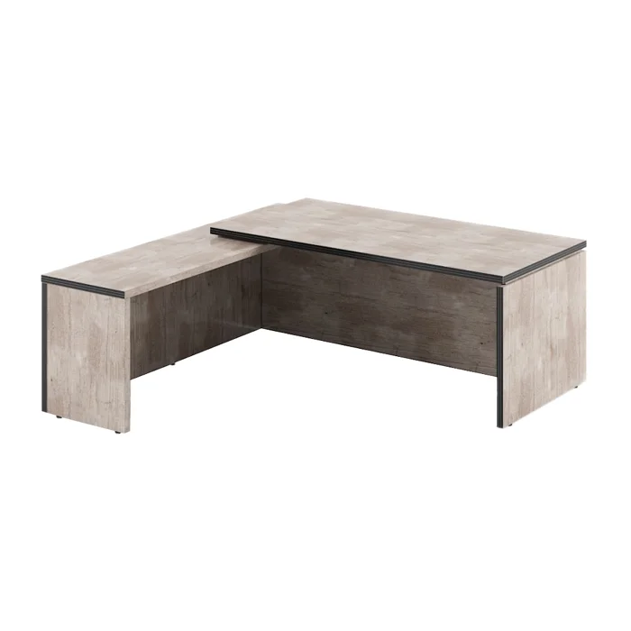 Большой угловой рабочий стол руководителя TORR для офисного или домашнего использования, размер - 2000х2000х750 мм, тип - правосторонний, цвет – Дуб Каньон. Оснащен надежными и долговечными опорами увеличенной ширины из ЛДСП 38 мм, которые расположены по краям стола. Между столешницей и опорами установлены специальные проставки, что создает эффект «парящей столешницы». Солидная и прочная столешница 38 мм. Все торцевые поверхности основных элементов стола облицованы глянцевой акриловой кромкой 2 мм с декоративными полосками внутри кромки, что придает ей 3D эффект. Торцы дополнительных элементов надежно защищены кромкой ПВХ 2 мм. Конструкция стола оснащена прочными силовыми креплениями – эксцентриковыми стяжками. Регулируемые по высоте опоры обеспечат столу устойчивость на неровном полу.