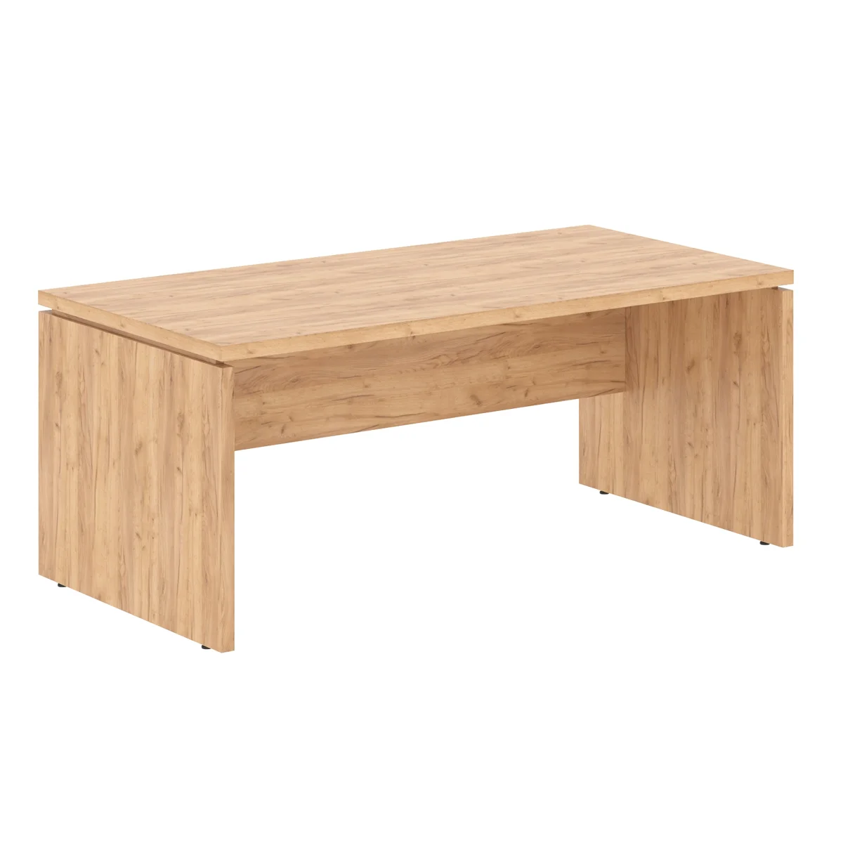 Солидный и большой рабочий стол руководителя TORR-Z для офисного или домашнего использования, размер - 1800х900х750 мм, цвет – Дуб Девон. Оснащен надежными и долговечными опорами увеличенной ширины из ЛДСП 38 мм, которые расположены по краям стола. Между столешницей и опорами установлены специальные проставки, что создает эффект «парящей столешницы». Солидная и прочная столешница 38 мм. Все торцевые поверхности стола надежно защищены кромкой ПВХ 2 мм. Конструкция стола оснащена прочными силовыми креплениями – эксцентриковыми стяжками. Регулируемые по высоте опоры обеспечат столу устойчивость на неровном полу.