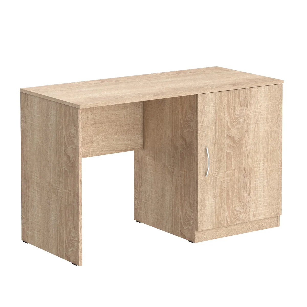 Универсальный стол с тумбой KANN подойдет для использования в гостинице или дома. Размеры - 1200х550х750 мм, тип - правосторонний, цвет – Дуб Сонома Светлый. Стол оснащен надежной столешницей из ЛДСП 16 мм. Тумба предназначена для размещения холодильника. На дверце установлена стильная металлическая ручка. Конструкция оснащена прочными силовыми креплениями – эксцентриковыми стяжками. Все торцы основных элементов надежно защищены кромкой ПВХ – 2 мм. Регулируемые по высоте опоры обеспечат столу устойчивость на неровном полу.