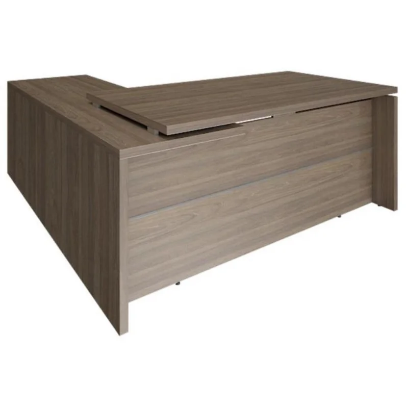 Стол руководителя LT-C 18R. Толщина столешницы и опор 36 мм. Опоры металлические с пластиковым основанием, диапазон регулировок до 15 мм. Покрытие износоустойчивый ламинат. При производстве изделия используется высококачественное ЛДСП, края деталей обработаны прочной ПВХ-кромкой 2 мм в цвет.