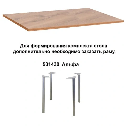 Столешница с пластиковым покрытием, предназначена для формирования комплекта стола. Дополнительно необходимо заказать одну из рам - 531429, 531430, 531431, 531049. Столы практичны и неприхотливы в обслуживании.