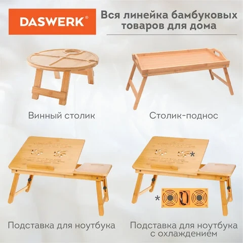 Столик БАМБУКОВЫЙ складной для ноутбука/завтрака (50х30х25 см), с охлаждением, DASWERK, 532583