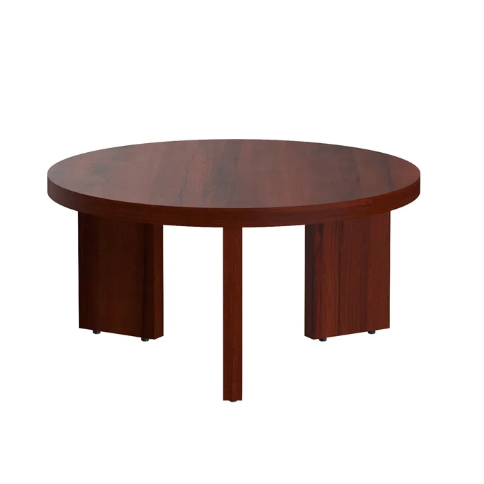Круглый журнальный стол COFFEE для офисного или домашнего использования, размер – D800х400 мм, цвет - Бургунди. Стол оснащен солидной толщины столешницей и прочными широкими опорами из ЛДСП 38 мм. Все торцы основных элементов надежно защищены кромкой ПВХ. Конструкция стола оснащена прочными силовыми креплениями – эксцентриковыми стяжками. Регулируемые по высоте опоры обеспечат столу устойчивость на неровном полу.