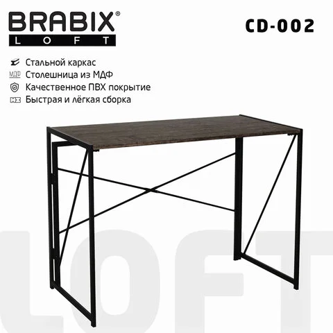 Стол прямой Brabix Loft CD-002 мореный дуб, 1000х500х750мм