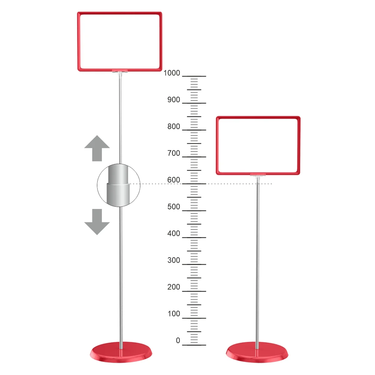 Универсальная телескопическая информационная стойка — это отличное решение для экспресс-оформления витрин и акций. Изделие представлено с круглым металлическим основанием. Рамку формата А4 можно расположить вертикально или горизонтально. Она двусторонняя. Стойка адаптируется под любую высоту — от 600 до 1 000 мм с помощью телескопической трубки. Цвет — красный.