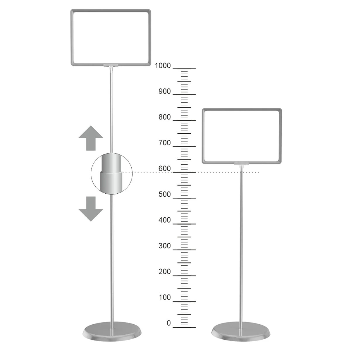Универсальная телескопическая информационная стойка — это отличное решение для экспресс-оформления витрин и акций. Изделие представлено с круглым металлическим основанием. Рамку формата А4 можно расположить вертикально или горизонтально. Она двусторонняя. Стойка адаптируется под любую высоту — от 600 до 1 000 мм с помощью телескопической трубки. Цвет — серый.