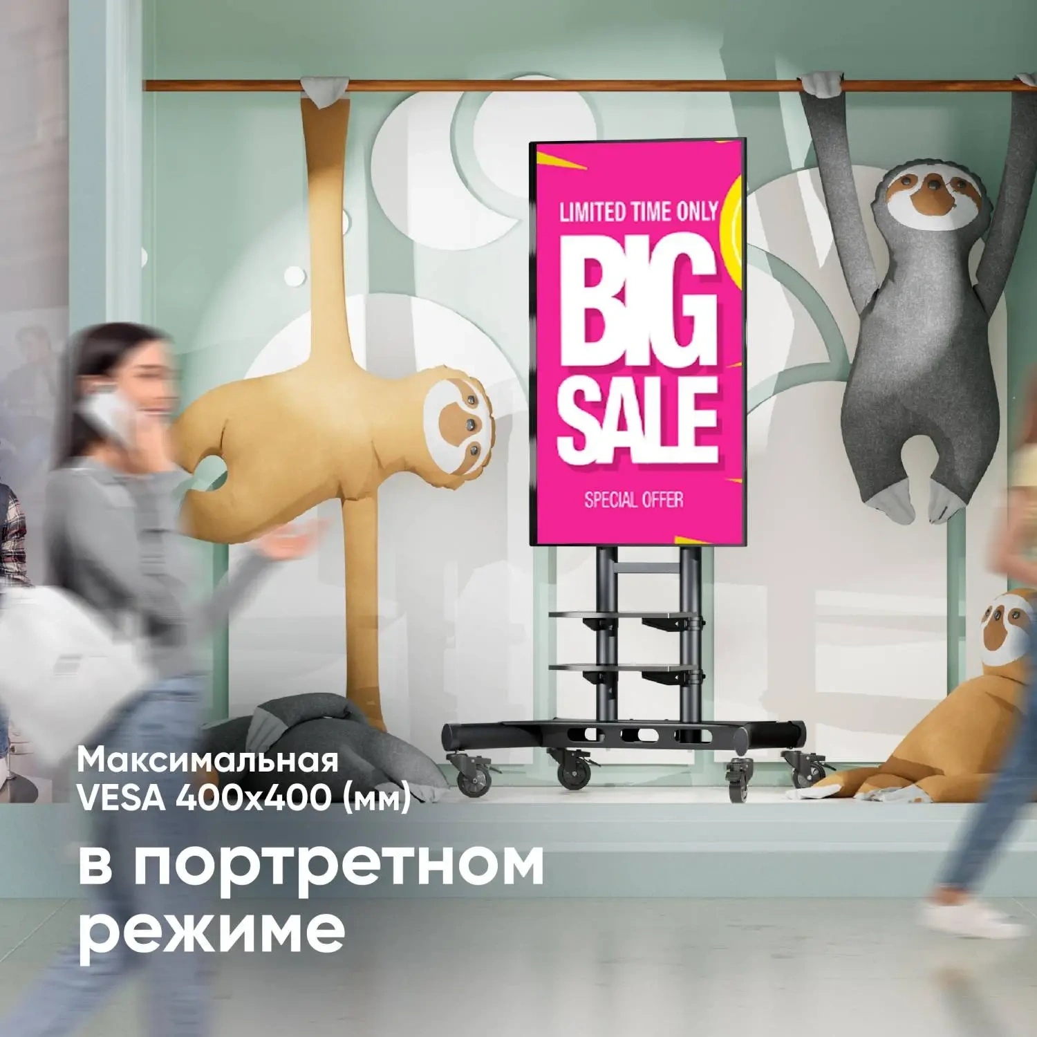 Надёжные колесики с системой фиксации. 4 манёвренных колеса диаметром 50мм позволяют перевести стойку в любое место в помещении, а встроенные тормоза в каждом из них смогут надёжно её зафиксировать и избежать случайного перемещения.