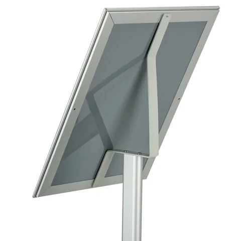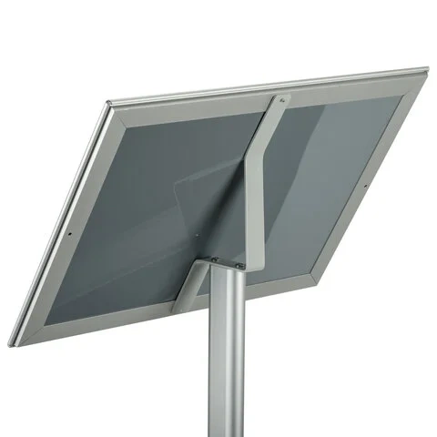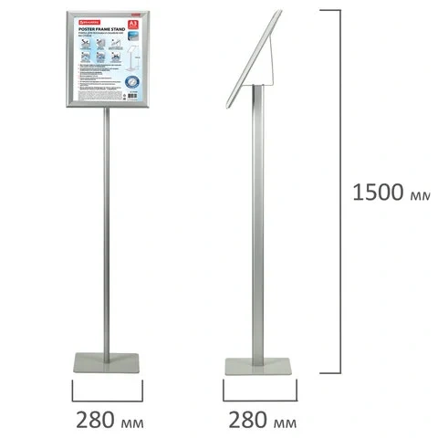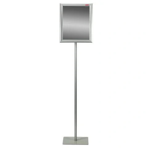 Предназначен для размещения листовки формата А3 (29,7х42 см). Рамка и стойка изготовлены из алюминия. Общая высота составляет 150 см. Ширина профиля - 32 мм. Рамка может крепиться как вертикально, так и горизонтально; оснащена антибликовым прозрачным вкладышем из ПВХ для защиты изображения. Для того чтобы заменить листовку, достаточно поднять прижимные стороны рамки, вынуть защитный вкладыш и вставить новое изображение. Утяжеленное основание обеспечивает отличную устойчивость. Размещается автономно, без дополнительных креплений.