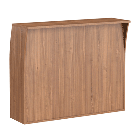 Универсальная стойка ресепшн IMAGO 144х51 для пользования в сфере услуг и продаж и офисного размещения, размеры - 1440х1150х510мм, цвет - Орех Французский. Солидная и прочная столешница 22 мм, надежная толщина опор - 18 мм.