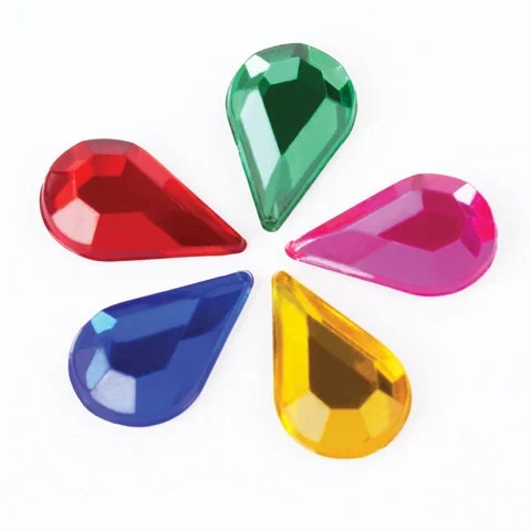 Качественный клеевой слой обеспечит надежную фиксацию на любых поверхностях. Изготовлены из пластика на основе акрила. Имеют форму капель и выполнены в 5 завораживающих цветах. Предназначены для детей от 3 лет. Поставляются в пакете с европодвесом. В упаковке - 30 г страз, размер 8 х 13 мм.