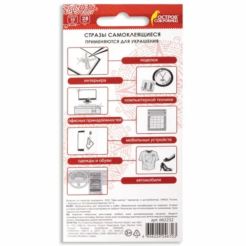 Самоклеящиеся стразы ОСТРОВ СОКРОВИЩ - это простой и доступный способ украсить любые изделия, придать им оригинальный, изысканный вид и заставить их блистать!