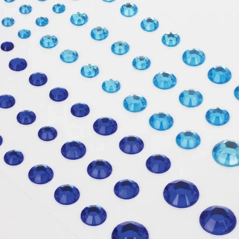 Стразы самоклеящиеся 'Круглые', 6-15 мм, 80 штук, синие и голубые, на подложке, ОСТРОВ СОКРОВИЩ, 661