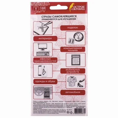 Самоклеящиеся стразы ОСТРОВ СОКРОВИЩ - это простой и доступный способ украсить любые изделия, придать им оригинальный, изысканный вид и заставить их блистать!