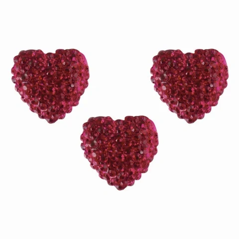 Самоклеящиеся стразы в форме сердец размеров 12 мм насыщенного малинового цвета предназначены для украшения различных изделий. В упаковке содержится 15 страз, каждый из которых как будто состоит из множества сверкающих кристаллов.