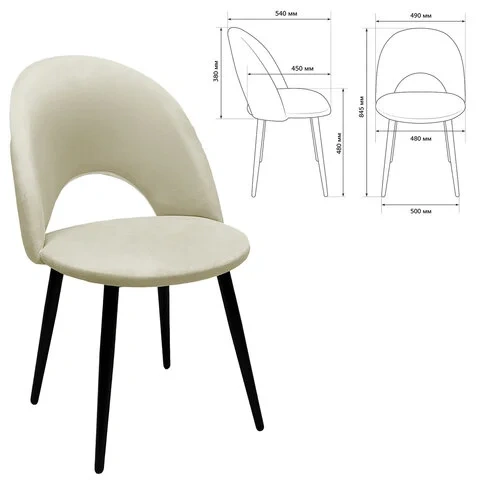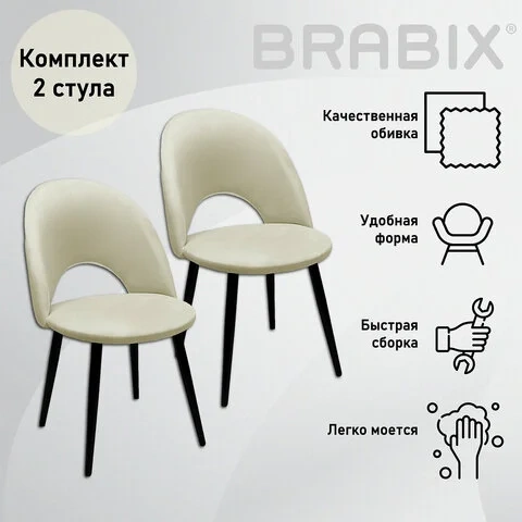 Стул для кафе Brabix Luna CF-070 велюр бежевый, каркас металлический усиленный черный, 2шт/уп