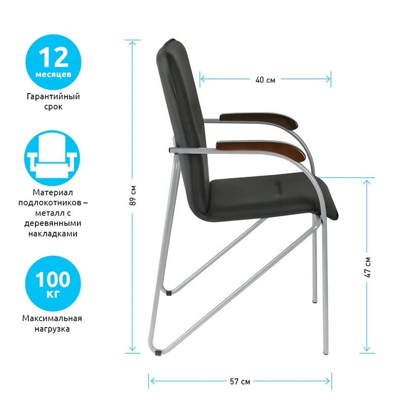 Универсальность модели стула для посетителей Helmi HL-F03 «Самба» в ее безупречной сочетаемости с самыми различными интерьерными решениями. Мягкое основание стула с монолитным фанерным каркасом на крашеной металлической раме обеспечивает комфорт посетителям и сотрудникам. Модель выполнена из экокожи черного цвета. Набивка – высокоупругий эластичный поролон. Подлокотники с деревянными накладками классического цвета «орех» добавляют особого лоска офисному стулу. Поставляются по 1 штуке в коробке.