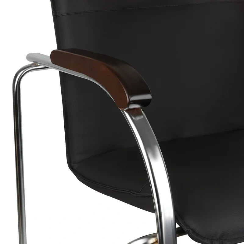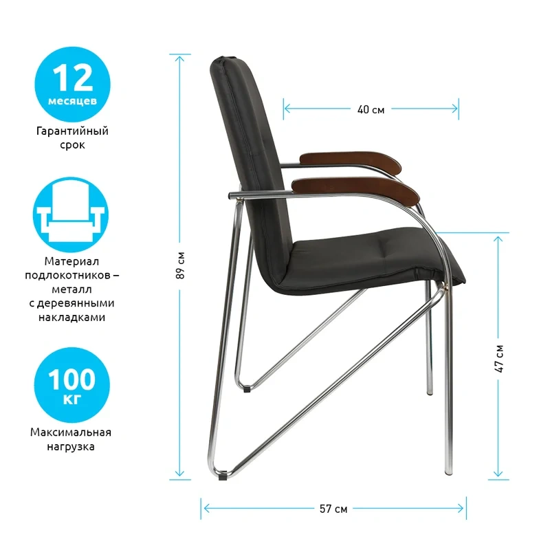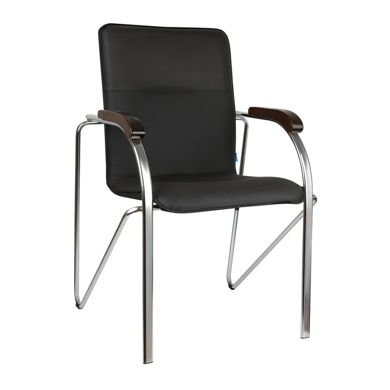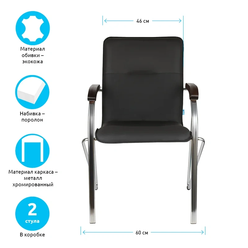 Универсальность модели стула для посетителей Helmi HL-F03 «Самба» в ее безупречной сочетаемости с самыми различными интерьерными решениями. Мягкое основание стула с монолитным фанерным каркасом на хромированной металлической раме обеспечивает комфорт посетителям и сотрудникам. Модель выполнена из экокожи черного цвета. Набивка – высокоупругий эластичный поролон. Подлокотники с деревянными накладками классического цвета «орех» добавляют особого лоска офисному стулу. Поставляются по 2 штуки в коробке.
