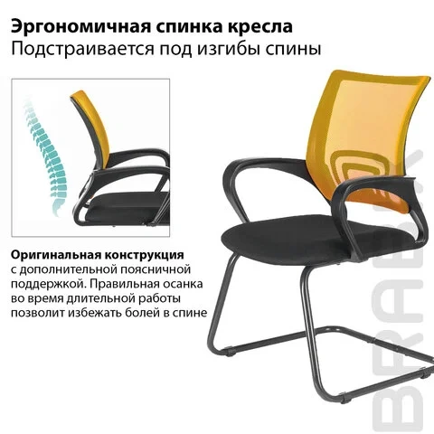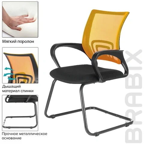 Стул посетителя Brabix Fly CF-100 ткань-сетка, черная-оранжевая, черный каркас