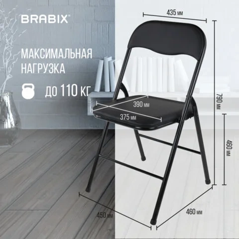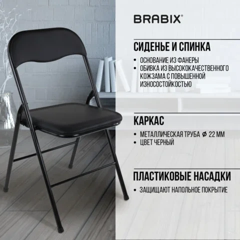 Стул посетителя складной Brabix Golf CF-007 кожзам, черный, каркас черный
