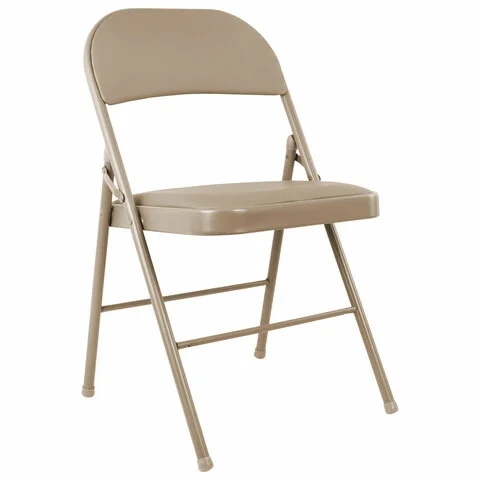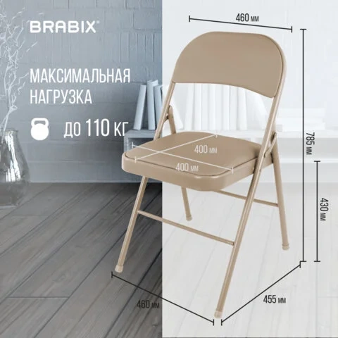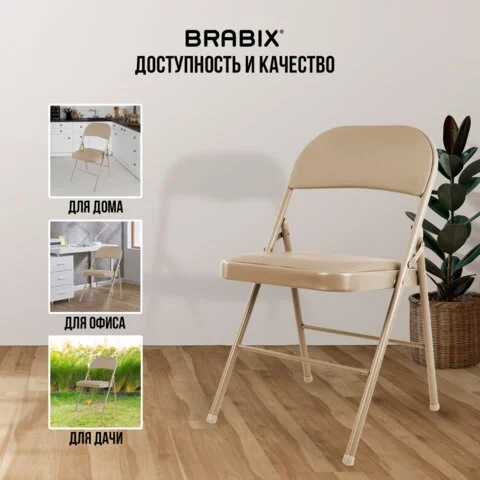 Стул посетителя складной Brabix Комфорт кожзам, бежевый, каркас бежевый, складной