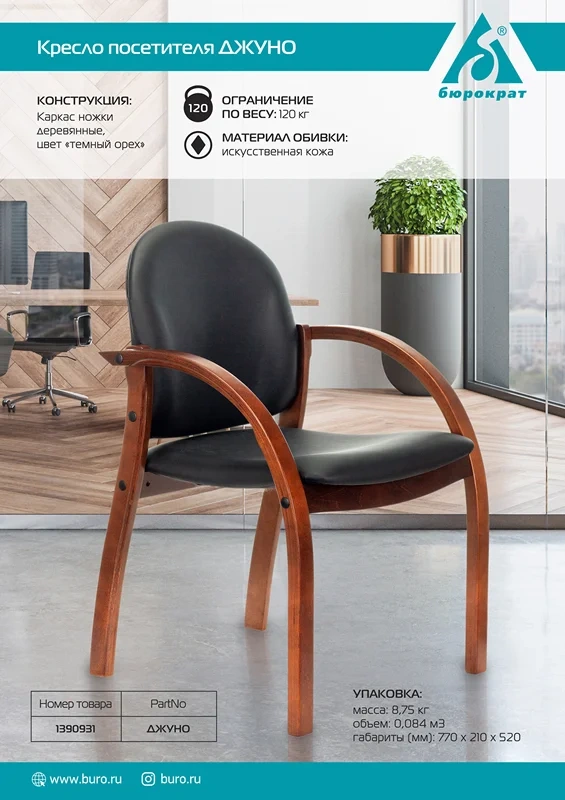 Стул посетителя Бюрократ Джуно экокожа, деревянные ножки