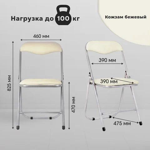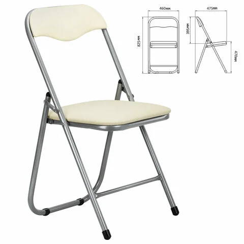 Стул посетителя складной РС04 кожзам, бежевый, каркас серебристый, складной