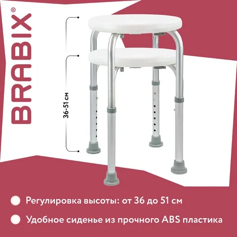 Стул-сиденье круглый ТИТАН для купания в душе / ванной, регулировка высоты ножек под любой рост, BRA