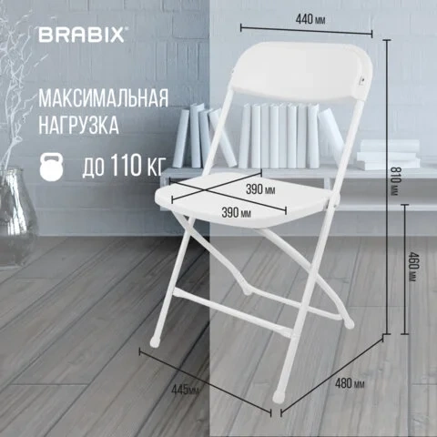 Стул складной BRABIX 'Golf CF-002', белый каркас, пластик белый, 532887