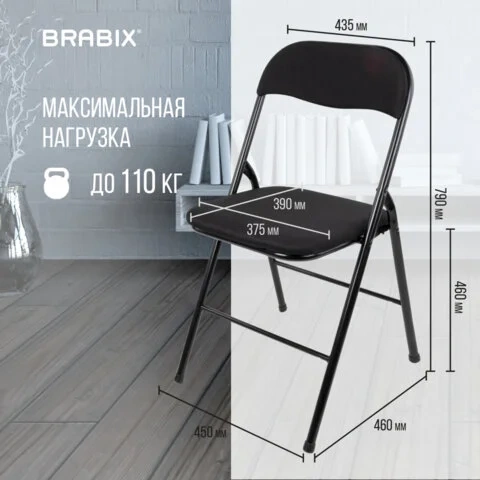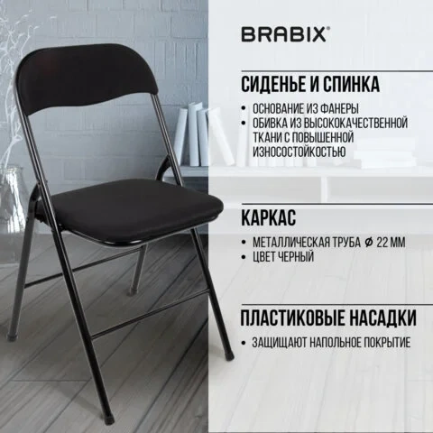 Стул складной BRABIX 'Golf CF-007', чёрный каркас, чёрная ткань, 532892