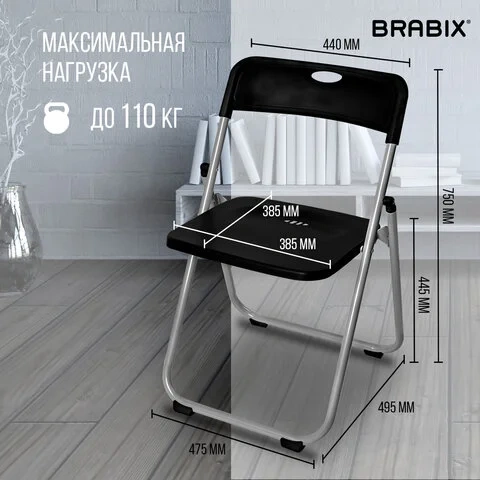 Стул складной BRABIX 'Golf Lite CF-017', серебристый каркас, пластик чёрный, 532895