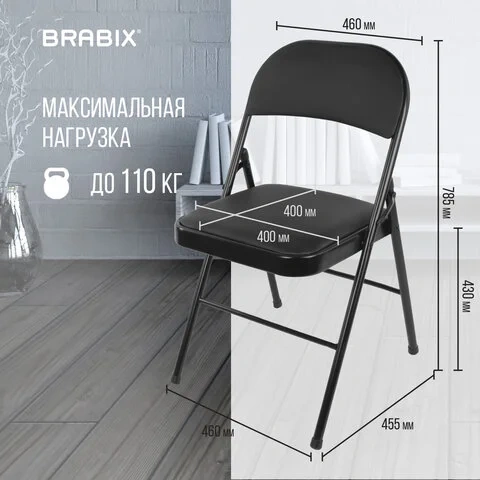 Стул складной BRABIX 'Golf Plus CF-003 КОМФОРТ', черный каркас, кожзам черный, В КОРОБЕ, 533026