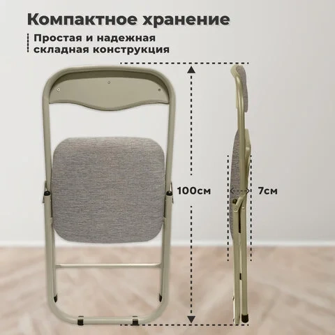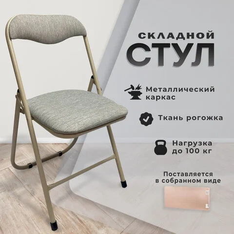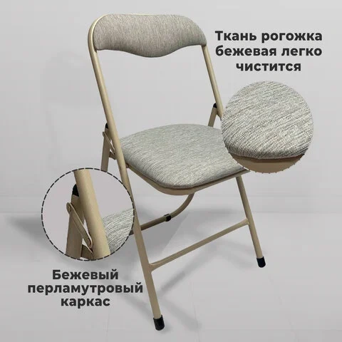 Стул складной для дома и офиса РС04, бежевый перламутровый каркас, рогожка бежевая
