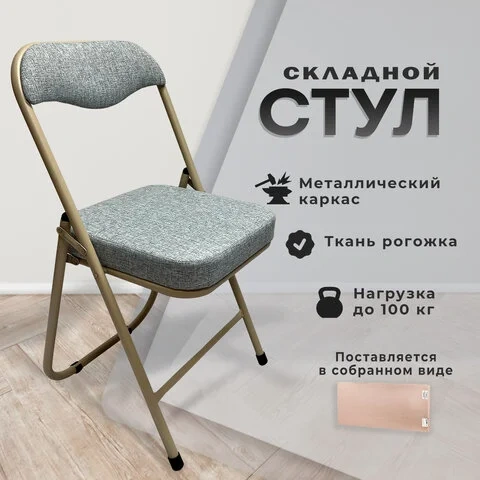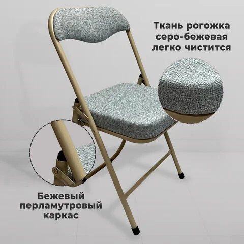 Стул складной для дома и офиса РС04К комфорт, бежевый перламутровый каркас, рогожка бежевая