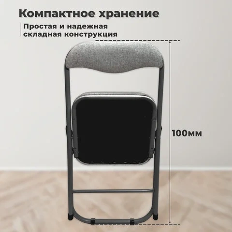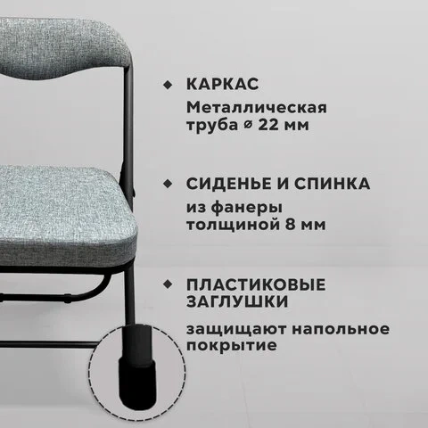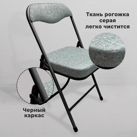Стул складной для дома и офиса РС04К комфорт, черный каркас, рогожка светло-серая