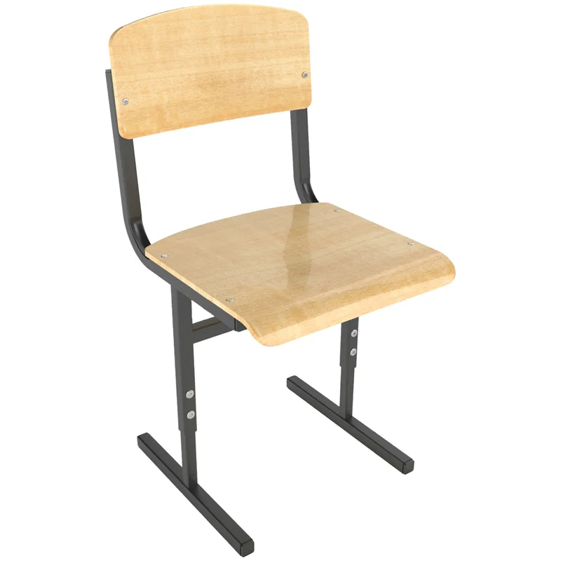 Сиденье и спинка изготовлены из гнутоклеенной фанеры толщиной не менее 8 мм, покрыты бесцветным лаком. Металлический каркас выполнен из профиля квадратного сечения 25х25 мм и 20х20мм с толщиной стенок не менее 1,2 мм и покрыт порошковой краской, стойкой к химическим и механическим воздействиям. На свободных концах труб установлены заглушки из ударопрочных полимеров. Каркас стула имеет полимерные подпятники, предотвращающие повреждение напольного покрытия. Сиденье и спинка крепятся к основанию при помощи мебельных болтов и гаек. Регулировка высоты осуществляется с помощью винтовых соединений с гайкой Эриксона. Вся крепежная фурнитура на металлокаркасах скрыта внутри трубы для продления срока службы изделия. Стул имеет цветовую маркировку в соответствии с ростовыми группами.
