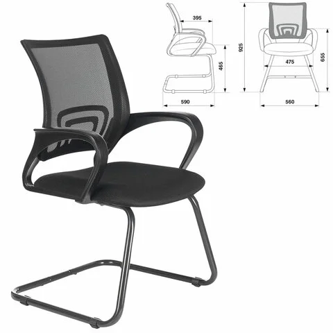 Стул посетителя Brabix Fly CF-100 ткань, черная, сетка черная, на полозьях