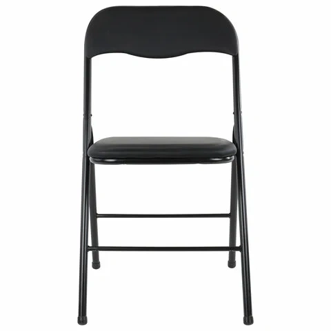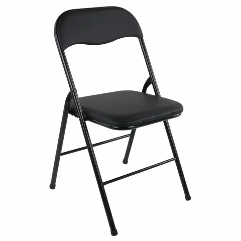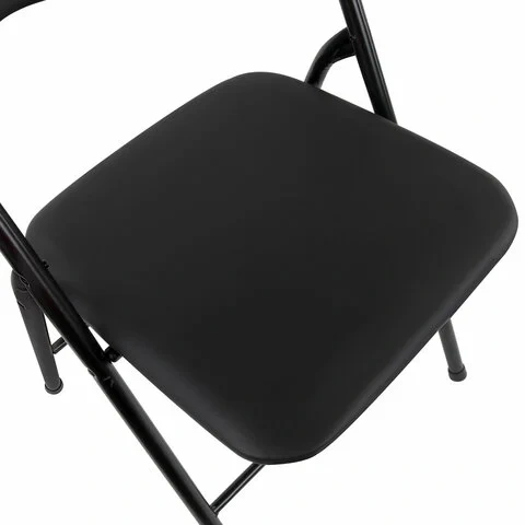 Материал обивки – качественный кожзаменитель повышенной износостойкости. Складная конструкция экономит место при перевозке и хранении. Доступная цена поможет оптимизировать бюджет. Прочная металлическая рама обеспечивает долговечность эксплуатации, а пластиковые насадки на ножках защищают напольное покрытие от повреждений. В набивке спинки и сиденья использован поролон высокой плотности. Стул выдерживает нагрузку до 110 кг. Для дополнительной сохранности комплект упакован в картонную коробку.